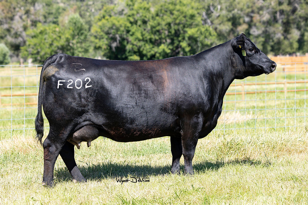 "Even though F202 has a rock-solid pedigree, that isn’t what sets her apart. She has proven her worth the old fashion way with the phenotype, rib shape, muscle, and overall maternal that she gives to her offspring. F202 is already leaving her stamp at Pine Coulee."